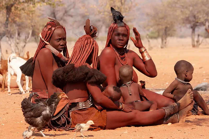 Les Himba se sont éloignés des Herero et ont poursuivi leur mode de vie plus traditionnel. Les Damara, également des peuples Khoisan, se caractérisent par leur société matrilinéaire. Le plus grand groupe ethnique est celui des Ovambo, des peuples bantous parlant le bantu du nord, dont les racines s’étendent également en Angola. Le peuple Kavango qui vit dans la région du Zambèze a également ses origines dans ce groupe bantou. En raison de leur mode de vie rural, ils se sont installés dans cette région pour ses terres fertiles. Dans l’histoire plus récente, la Namibie est également habitée par une petite population d’Allemands et d’Afrikaners. Malgré leur petit nombre, ils ont eu une grande influence sur l’architecture des grandes villes. En particulier, la ville côtière Swakopmund possède de nombreux anciens bâtiments de « style allemand ».